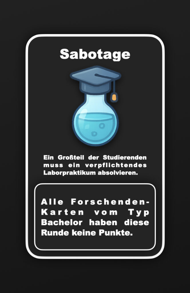 Alle Karten, deren höchster Abschluss der Bachelor ist, geben diese Runde keine Stats. Dies gilt auch für deine eigenen Karten.