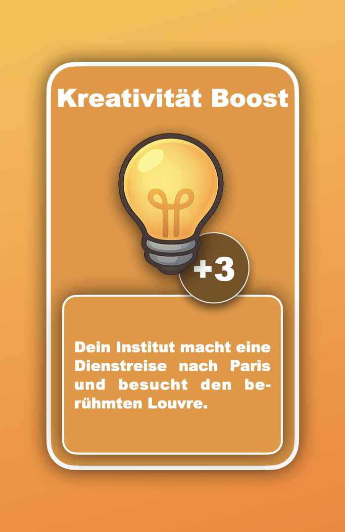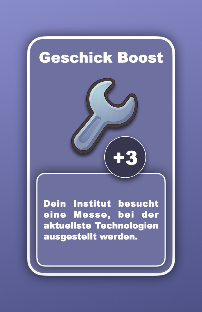 Wenn du eine dieser Aktionskarten ausspielst, erhöhst du deinen Wert für die entsprechende Stat um den auf der Karte angegebenen Wert. Beispiel: Eine Geschick-Boost +5 erhöht deinen Geschick-Wert für diese Runde um 5 für die Berechnung des Gesamtwerts.